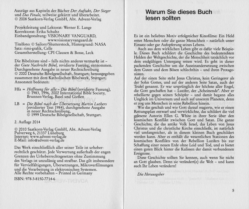 Auch aus dem wirklichen Leben gibt es dafür viele Beispiele. Dieses Buch schildert die Geschichte des bedeutendsten Helden der Weltgeschichte, der die Menschheit tatsächlich vor dem endgültigen Untergang retten wird. Es geht in dieser packenden Geschichte um die Auseinandersetzung zwischen dem Guten und dem Bösen schlechthin – und deren Protagonisten.
